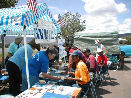 ![]() Members of the White Mountain Apache Tribe registered to vote on Native American Right to Vote Day, July 15, with the help of ApachesVote.org and the White Mountain Democrats.